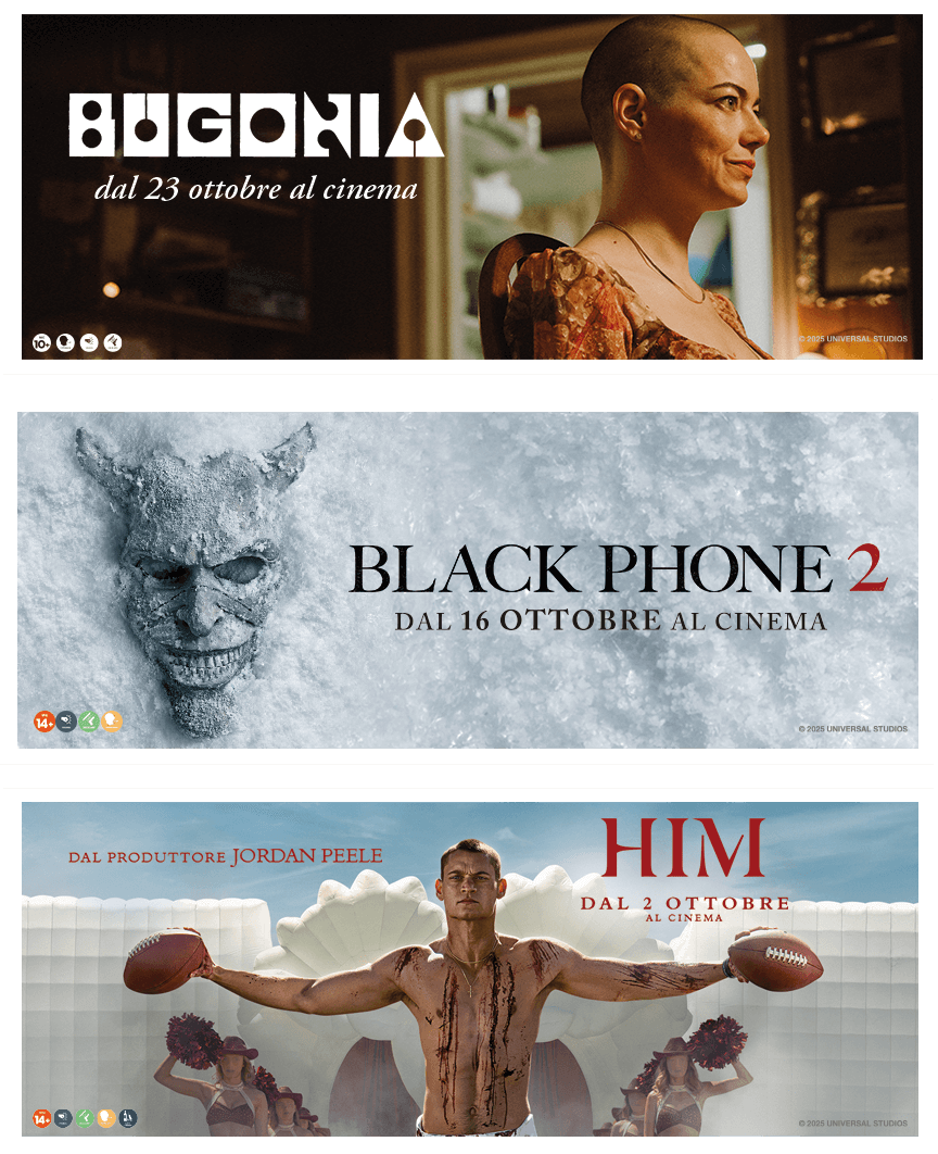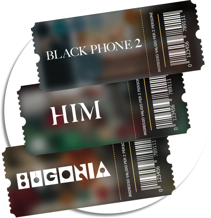 Registrati e scopri subito se hai vinto una coppia di biglietti cinema per vedere un film tra Him, Black Phone 2 o Bugonia.